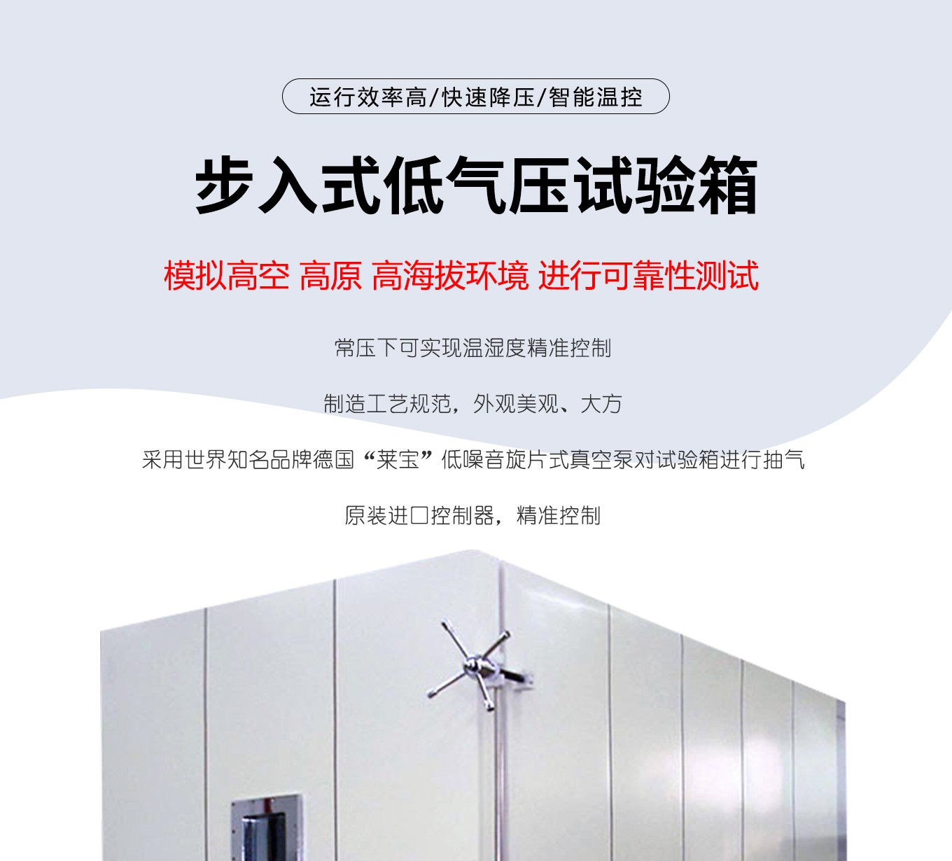 查看更多高空低气压香蕉视频APP下载,又称低气压试验机、低气压(高度)香蕉视频APP下载、模拟高原气压香蕉视频APP下载,高低温低气压香蕉视频APP下载、高低温低气压实验箱、高低温湿热低气压香蕉视频APP下载,适用于电工、电子产品及其他产品、零部件及材料进行低气压试验的环境香蕉视频APP下载设备。