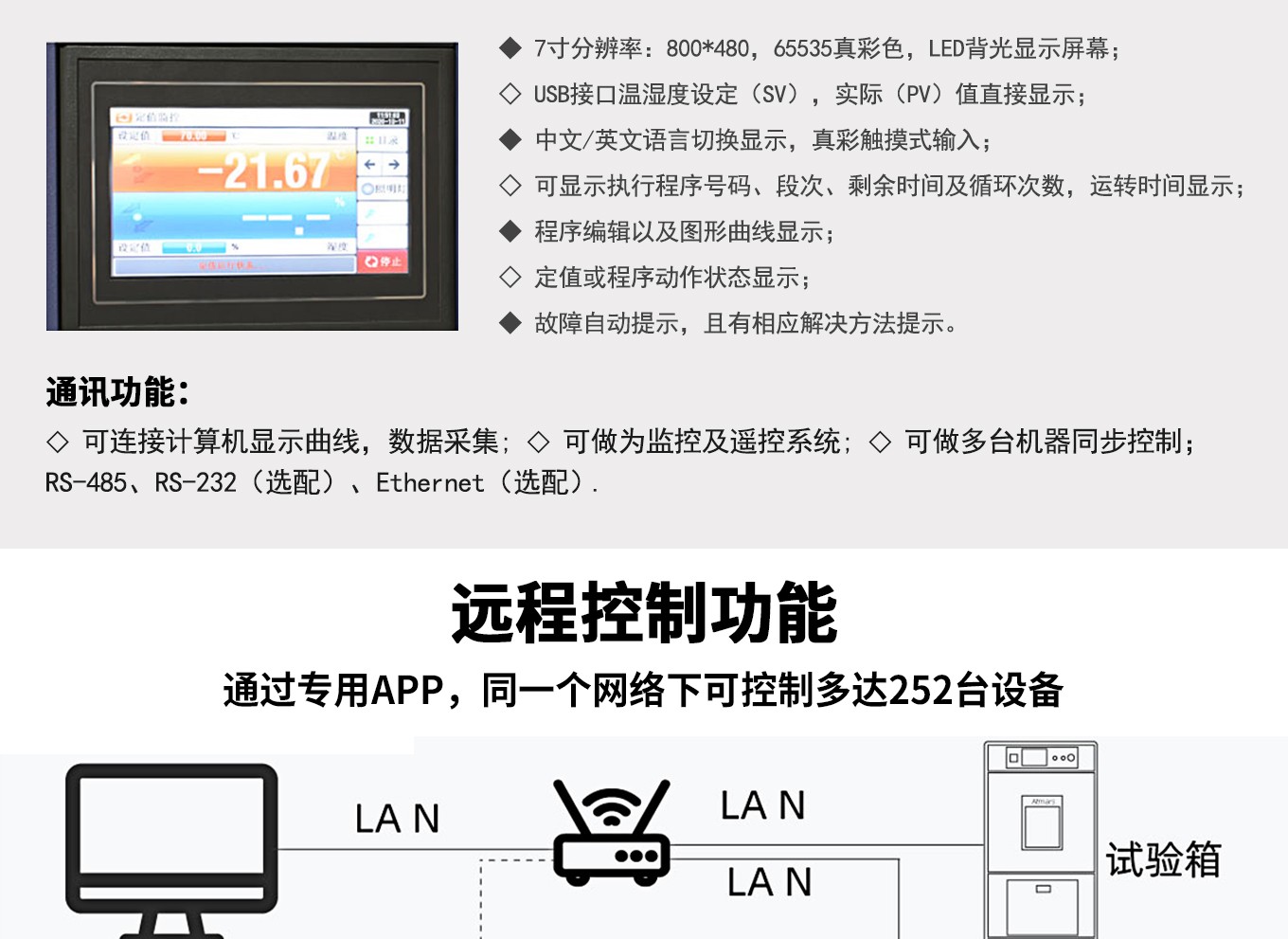 恒温恒湿香蕉视频APP下载在一定空间内形成特定温湿度的设备,适用于电子产品及电子零部件、材料、纤维、制药、电池等现代工业产品耐久性和可靠性测试的必备设备。在设定时间内模拟形成各种严酷气候条件,可预测正常条件下的耐久性试验。在加温、冷却、除湿、加湿完美调和控制下形成高精度的温湿度环境。