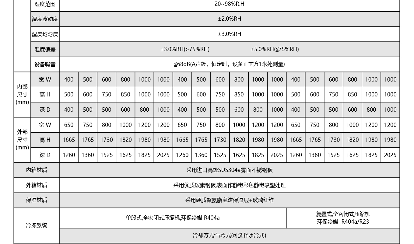温度范围:-20℃/-40℃/-60℃/-70℃~+150℃