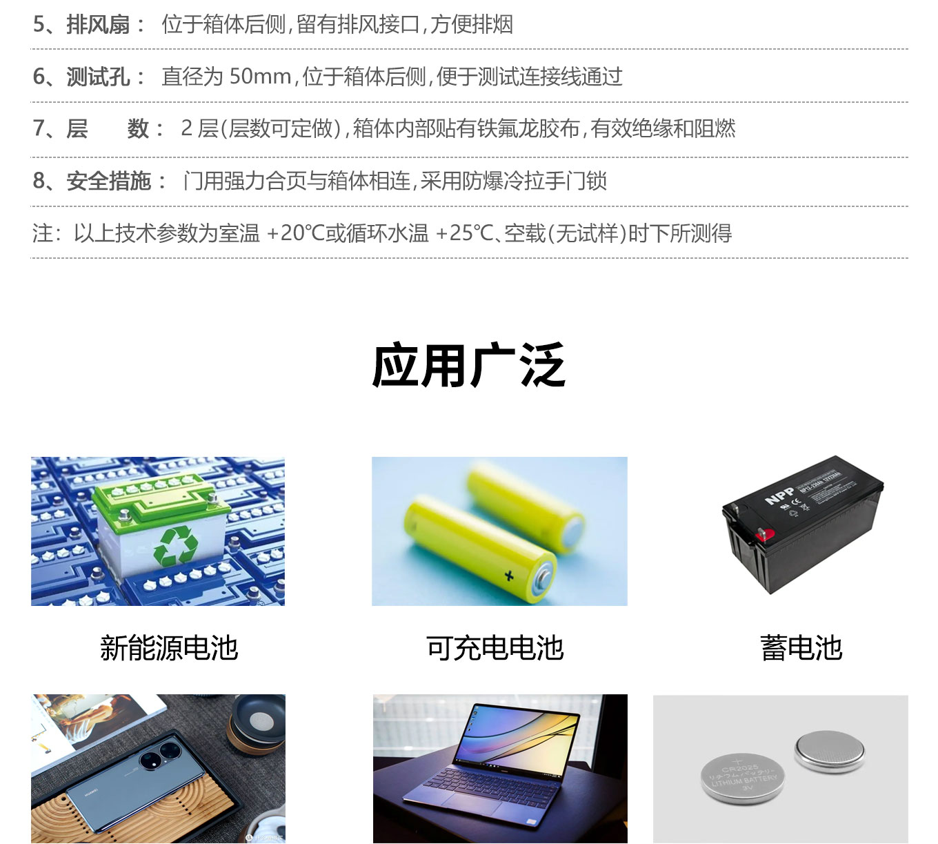 5、测试孔:直径为50mm,位于箱体后侧,便于测试连接线通过。