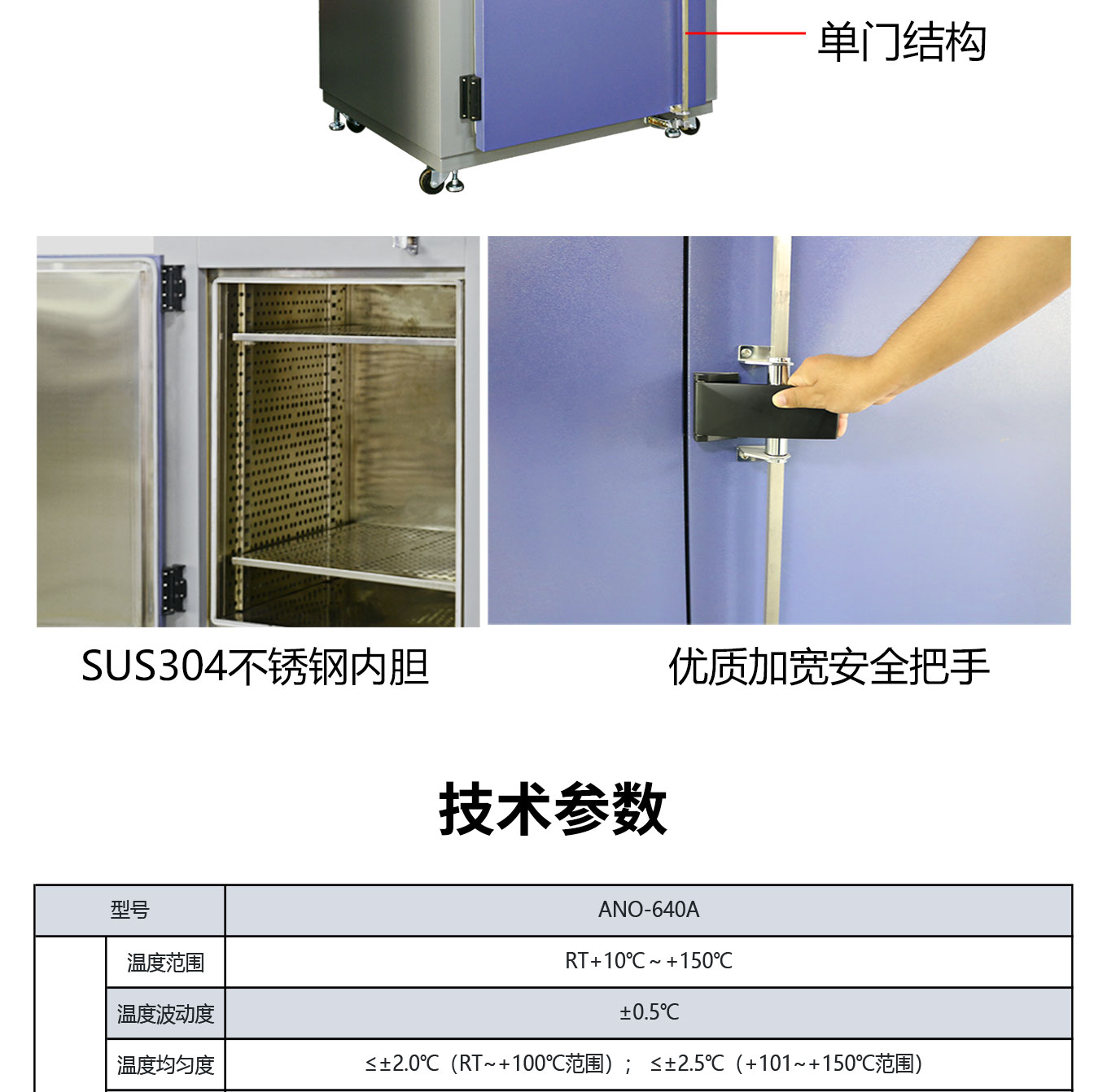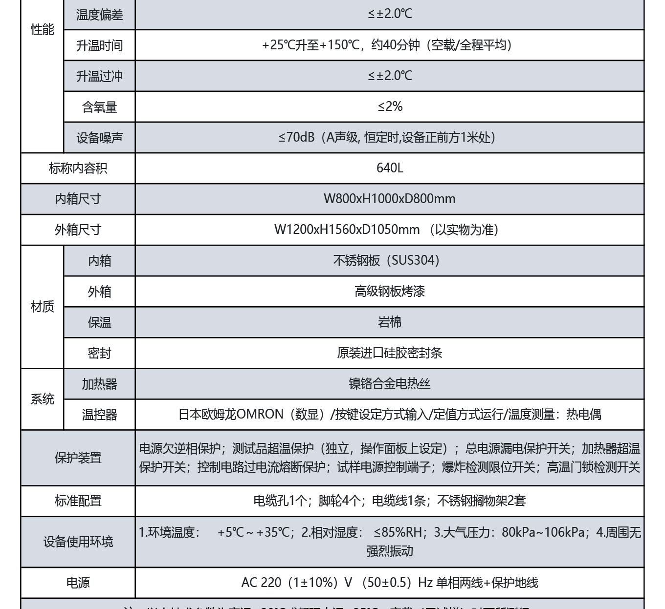 温度均匀度:≤±2.0℃(RT~+100℃范围); ≤±2.5℃(+101~+150℃范围)