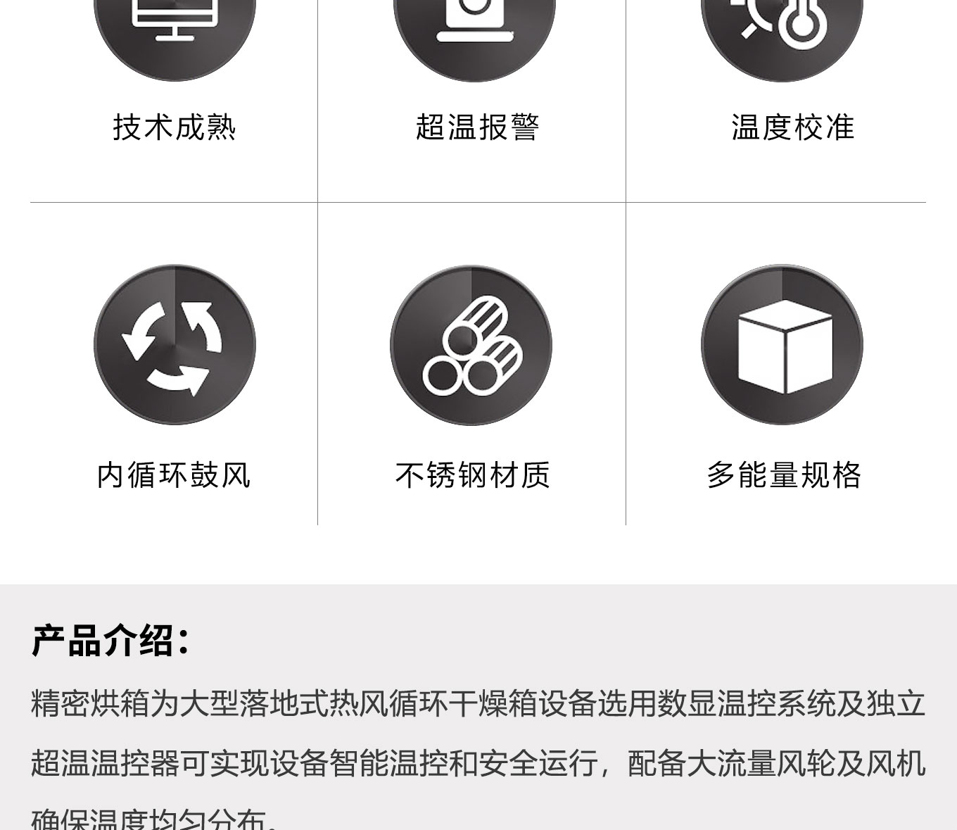 香蕉视频在线看污污精密烘箱为大型落地式热风循环干燥箱设备选用数显温控系统及独立超温温控器可实现设备智能温控和安全运行,配备大流量风轮及风机确保温度均匀分布。